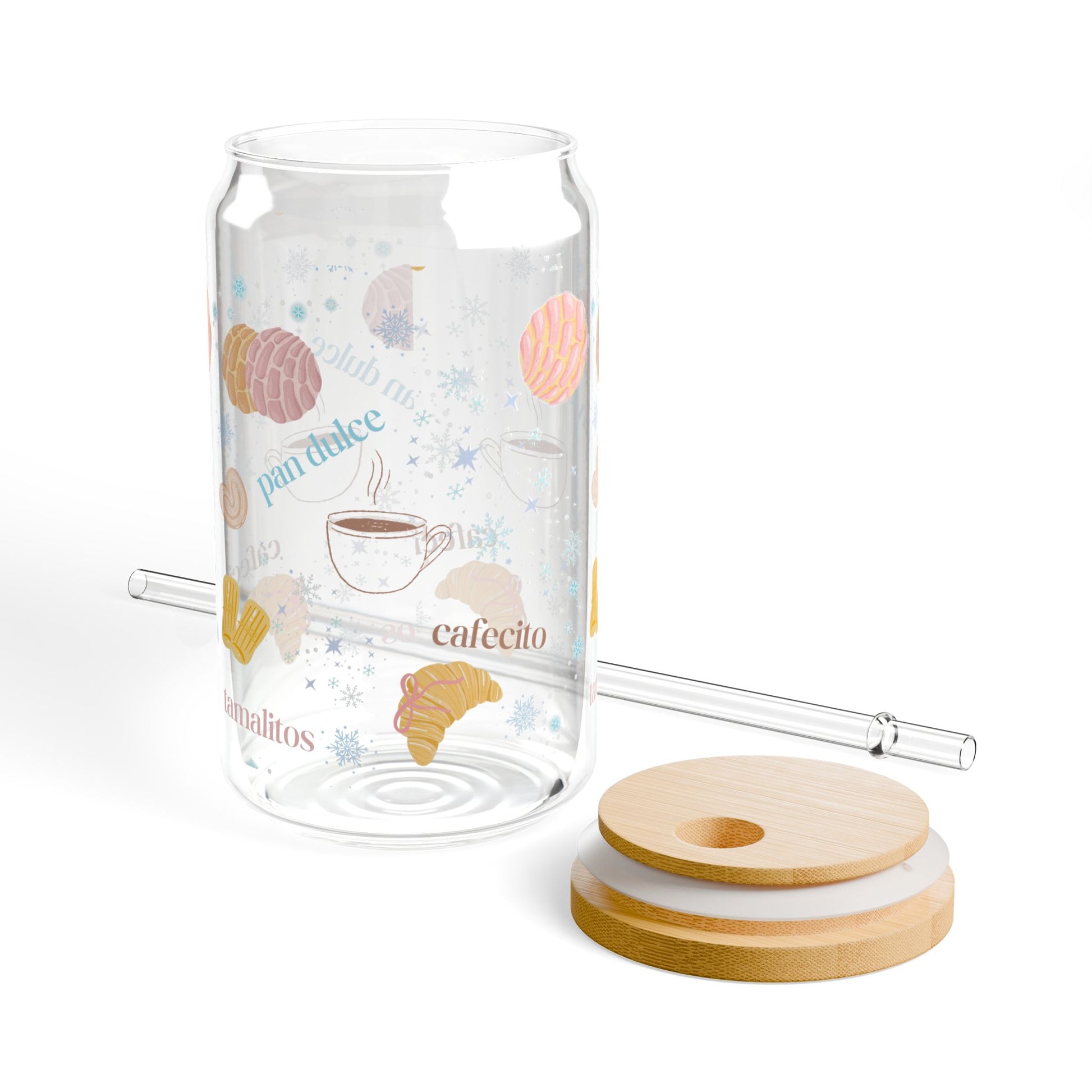 Cafecito & Pan Dulce 16oz Sipper Glass - Coffee & Pastry Lover Drinkware